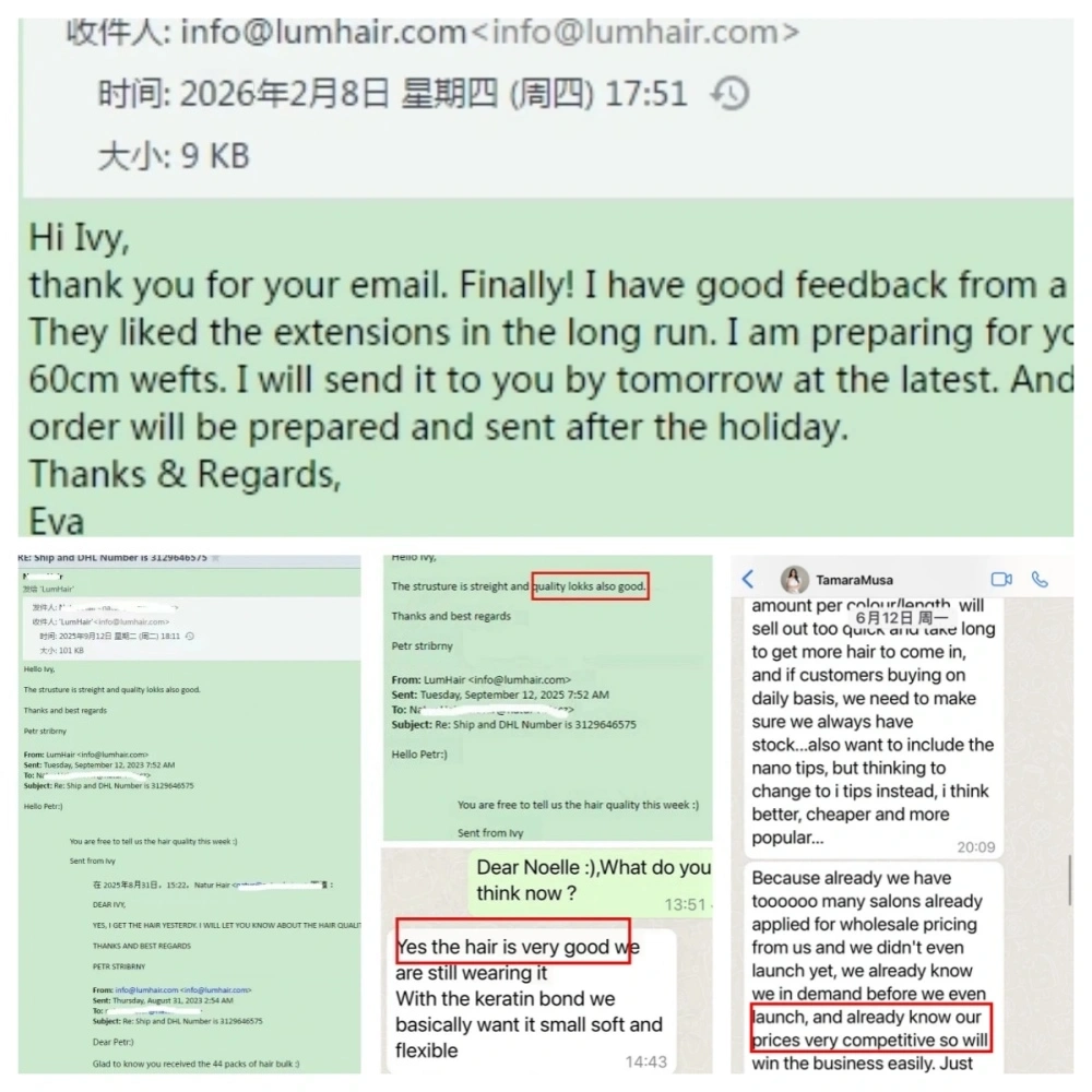 A Lum Hair ügyfelei az Egyesült Királyságban, az Egyesült Államokban, Kanadában, Ausztráliában, Dániában, Új-Zélandon, Norvégiában, Németországban, Franciaországban, Hollandiában, Svédországban, Lengyelországban, Csehországban, Szlovákiában stb. találhatók. Ivy értékesítési vezetőként folyékonyan beszél angolul a jó kommunikáció érdekében.