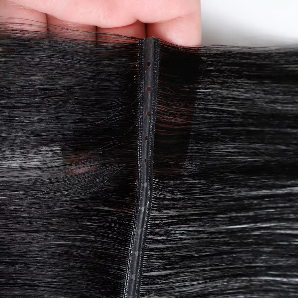 Könnyű telepítés minden készségszinthez: Nem szükséges továbbképzés! Az előre elkészített PU lyukak lehetővé teszik a vetülékek rögzítését gyöngyökkel vagy hibrid varrástechnikával, így az új stylistok és a tapasztalt profik számára is elérhetővé válik.
