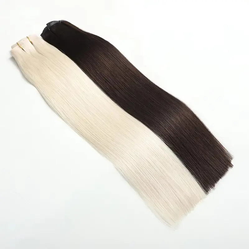 A Lum Hair a Clip In Seamless hajhosszabbítások professzionális gyártója és szállítója, 23 éves tapasztalattal. A csíptetős hajhosszabbítások árai ésszerűek, de kiváló minőségű Cuticle Remy emberi hajból készülnek, a kutikulák ugyanabba az irányba igazítva, megkönnyítve a sima tapintást, a gubancmentességet és a természetes megjelenést. Nagyon könnyen viselhetők, kényelmesek, újrafelhasználhatók, és azonnal hosszúságot és volument adnak a hajának.