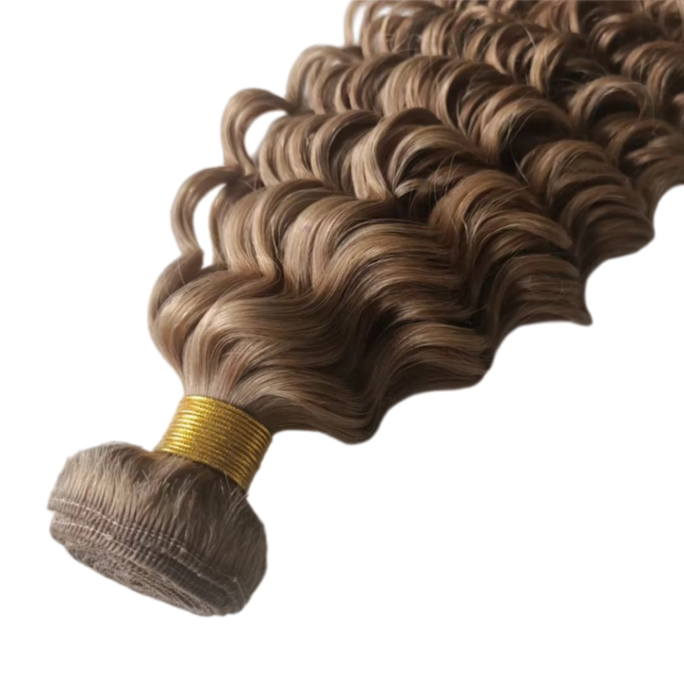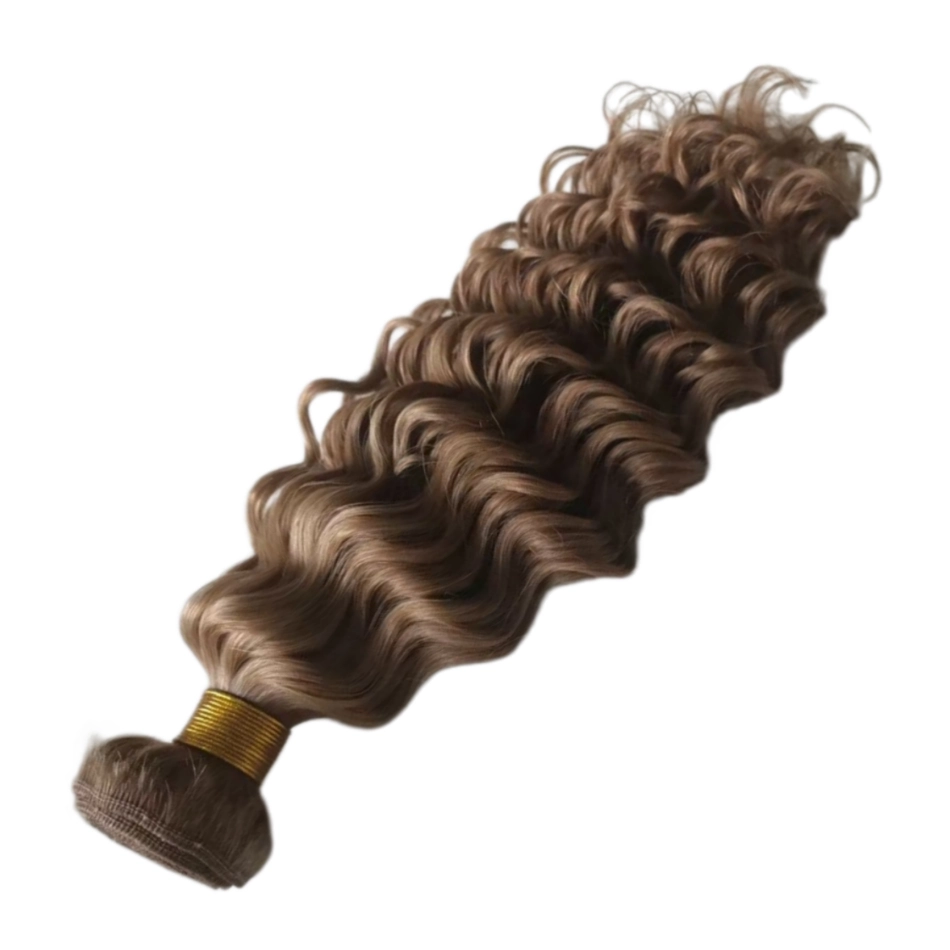 Mély hullám A göndör hajhosszabbítás továbbra is a legjobb választás a piacon, és a mélyhullám az egyik legnépszerűbb stílus. Tiszta, konzisztens spirális fürtjei jól megtartják formájukat, kiegyensúlyozott textúrát kínálva a test hullámai és a göröngyös göndörség között. Közepes hangerővel, amely nem túl nehéz, ez a sokoldalú hullám mind a hétköznapi megjelenéshez, mind a formálisabb, polírozott frizurához egyaránt alkalmas. Ideális azok számára, akik lendületes, hosszan tartó, bőséges dimenziójú fürtöket szeretnének. A mélyhullámú szövés tökéletes a szalonok ügyfelei és végfelhasználói számára, akik elbűvölő, gördülékeny göndör stílusokat szeretnének létrehozni erős göndörítéssel.