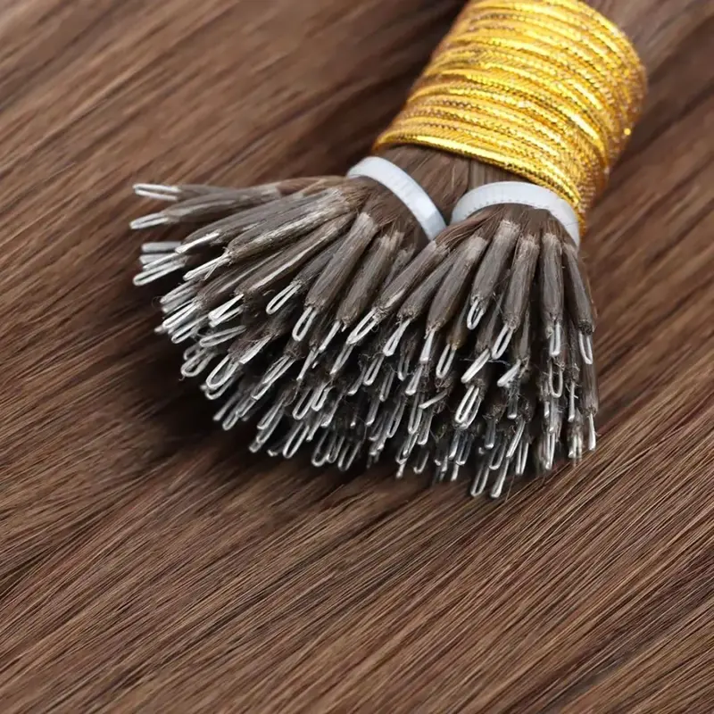 A China Nano Bead hajhosszabbítások és a nanogyűrűs hajhosszabbítások legnagyobb előnyei apró méretükben rejlenek – gyakorlatilag észrevehetetlenek. A telepítés nem igényel hőt vagy erős vegyszereket, és ez kulcsfontosságú értékesítési pont az ügyfelek számára: a szilikonnal bélelt gyűrűk segítenek minimalizálni a természetes haj károsodását