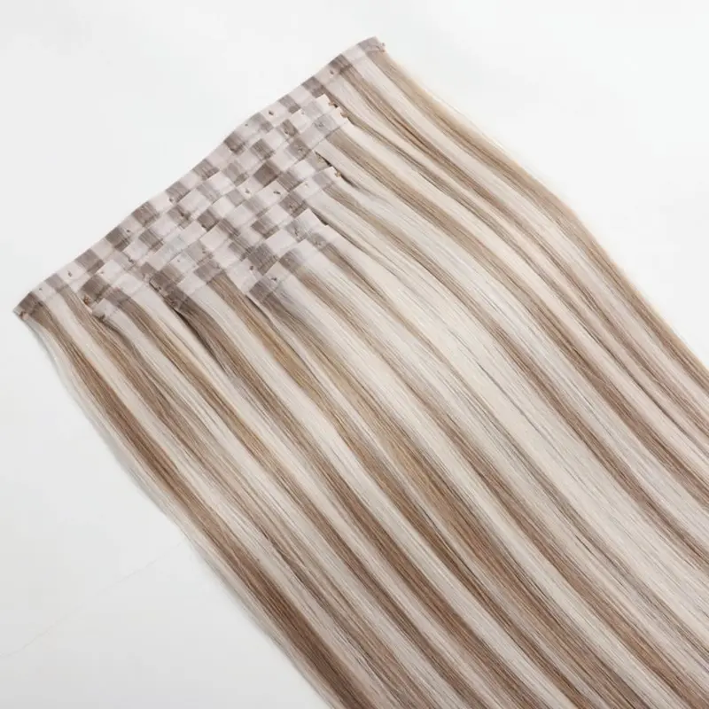 • Varrat nélküli klip emberi hajhosszabbításbanVarrat nélküli klip emberi hajhosszabbításban